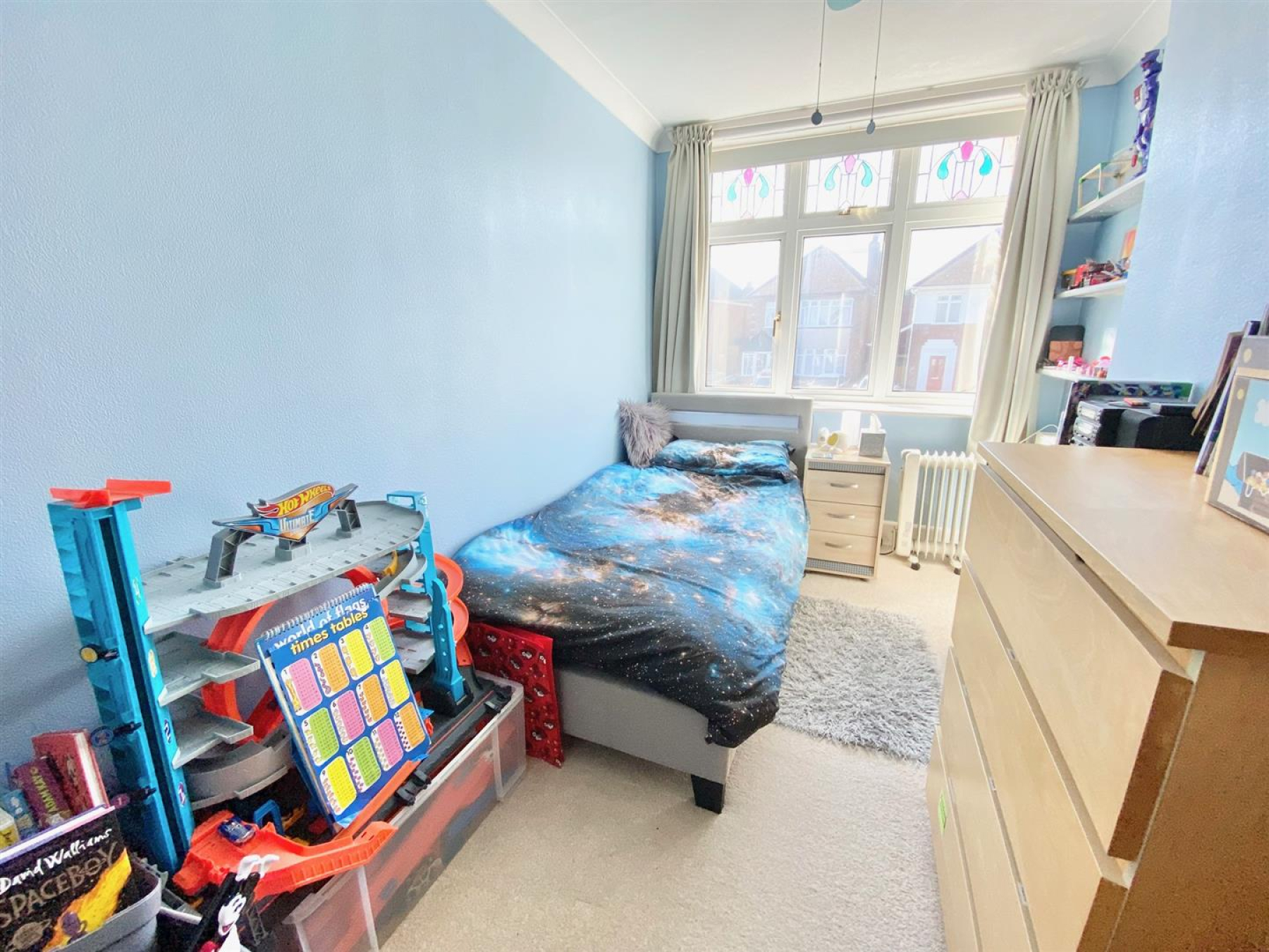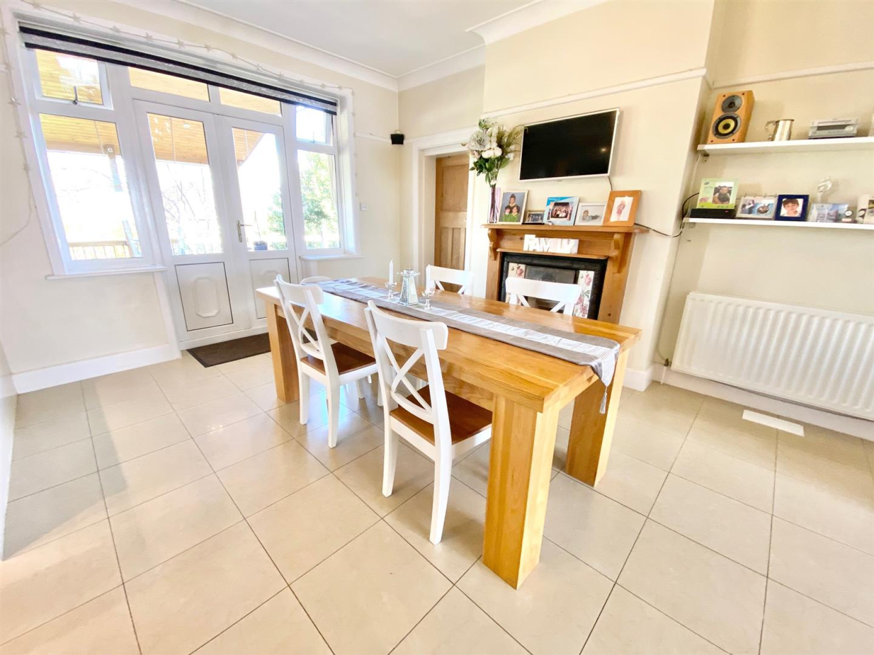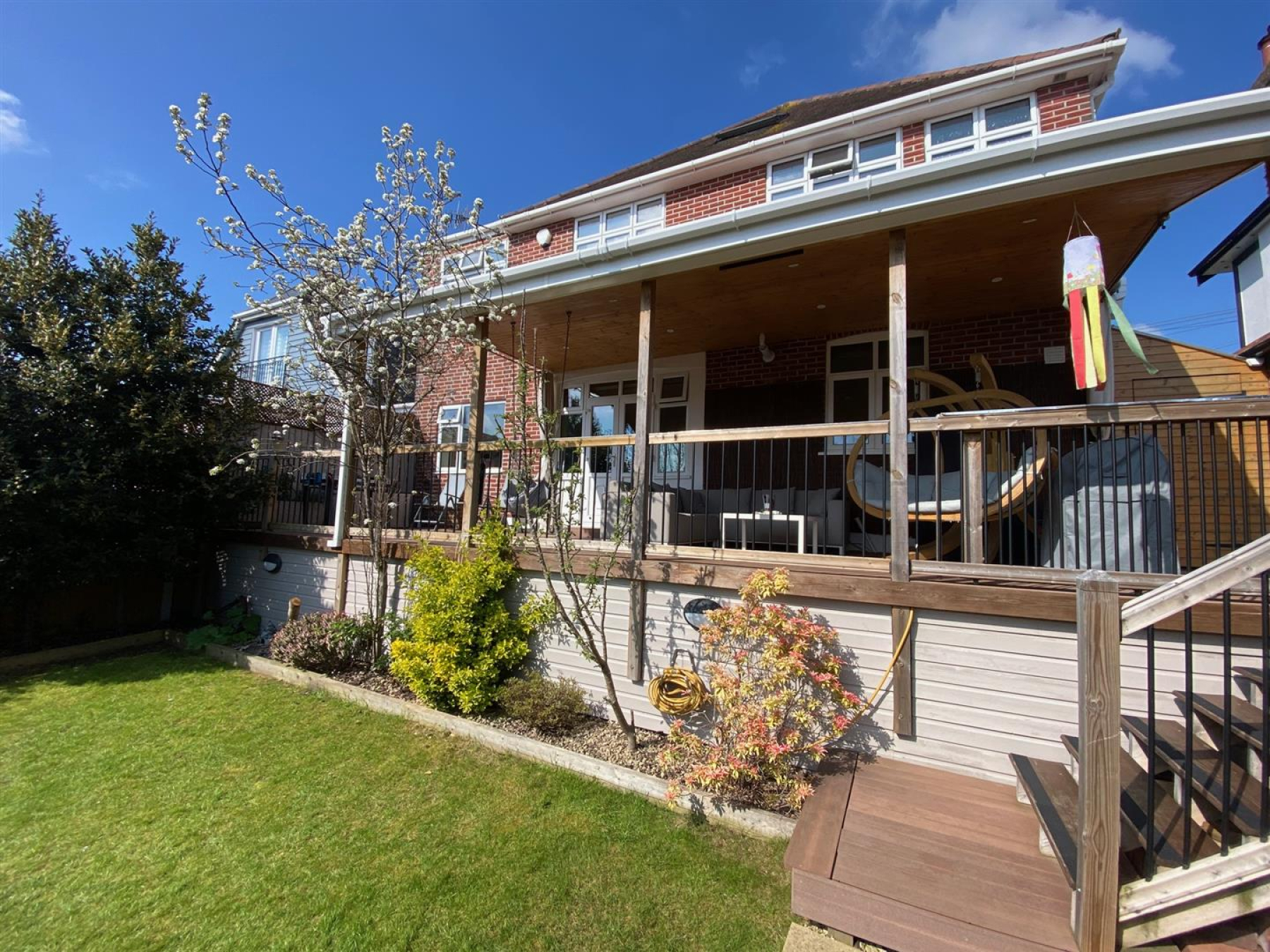 The rear garden is enclosed and provides a lawned area along with an additional patio area and vegetable patch for those that like to grow their own. To the front there is a low level brick wall with an in and out driveway that provides ample parking for several vehicles. There is also the addition of a garage with up and over door.