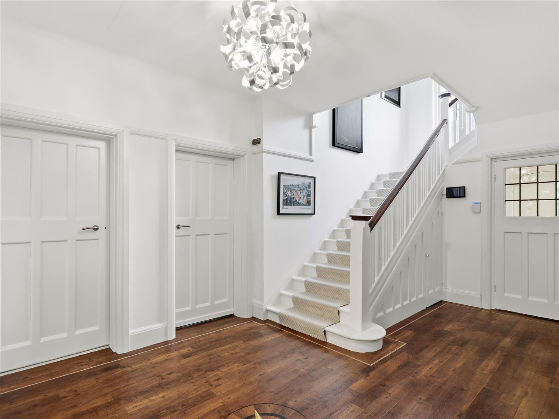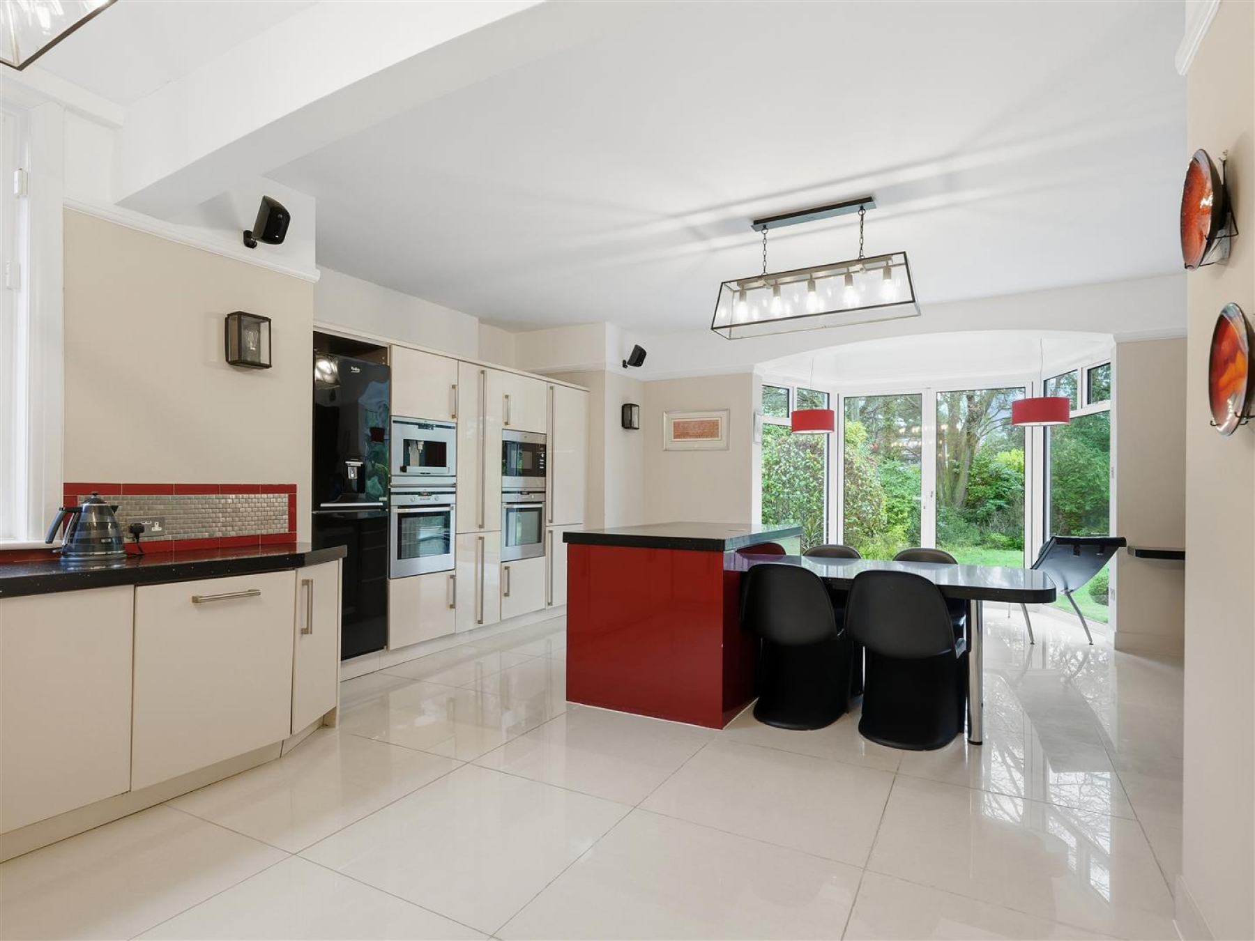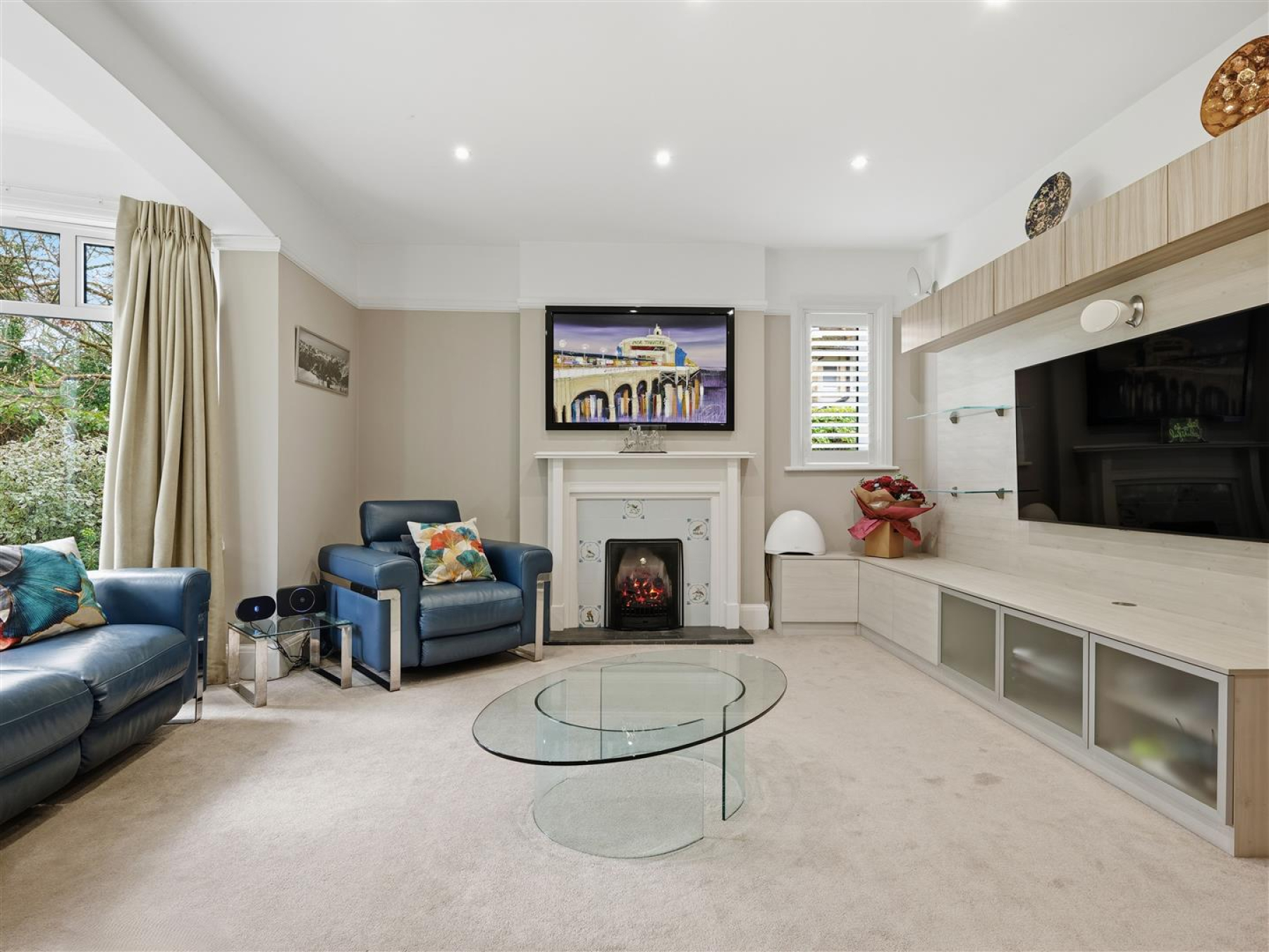 The ground floor offers highly flexible accommodation, arranged as five double bedrooms with four reception rooms or alternatively six double bedrooms with three reception rooms. The principal living room features a fireplace, bay window and French doors opening to the gardens. The kitchen family room is a standout space with extensive fitted units, stone worktops and integrated appliances, also benefitting from a bay window with French doors.