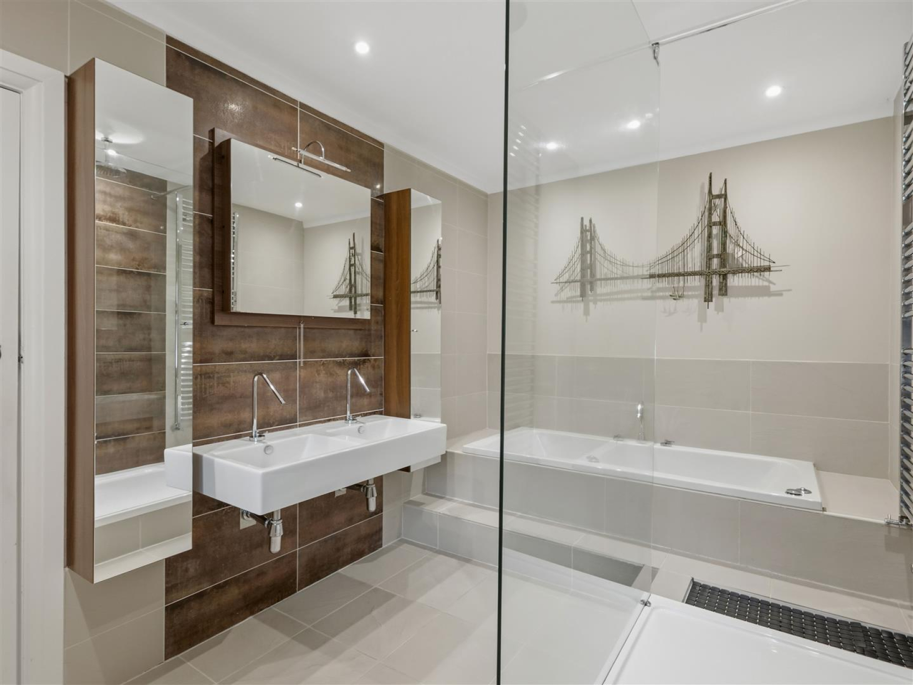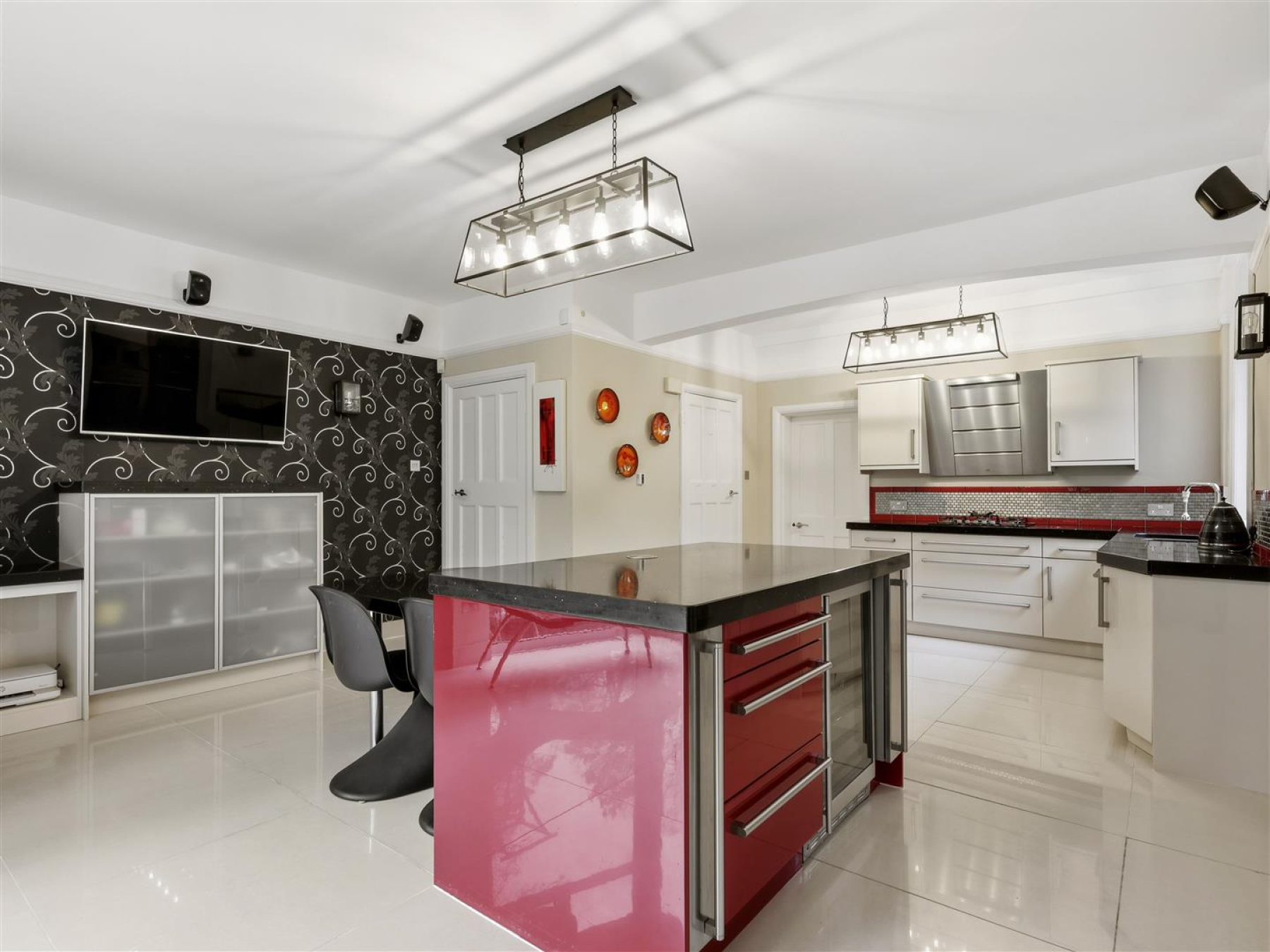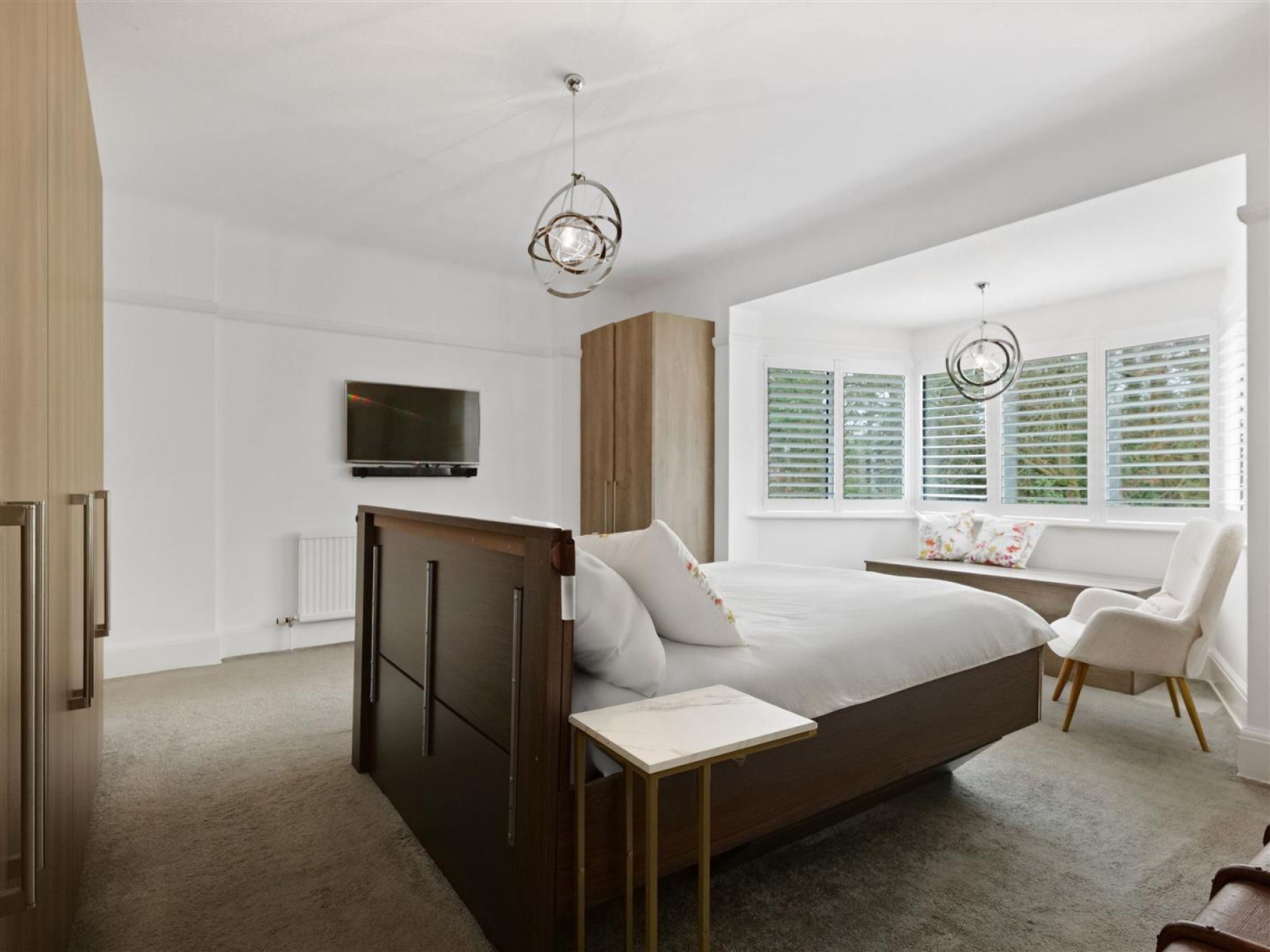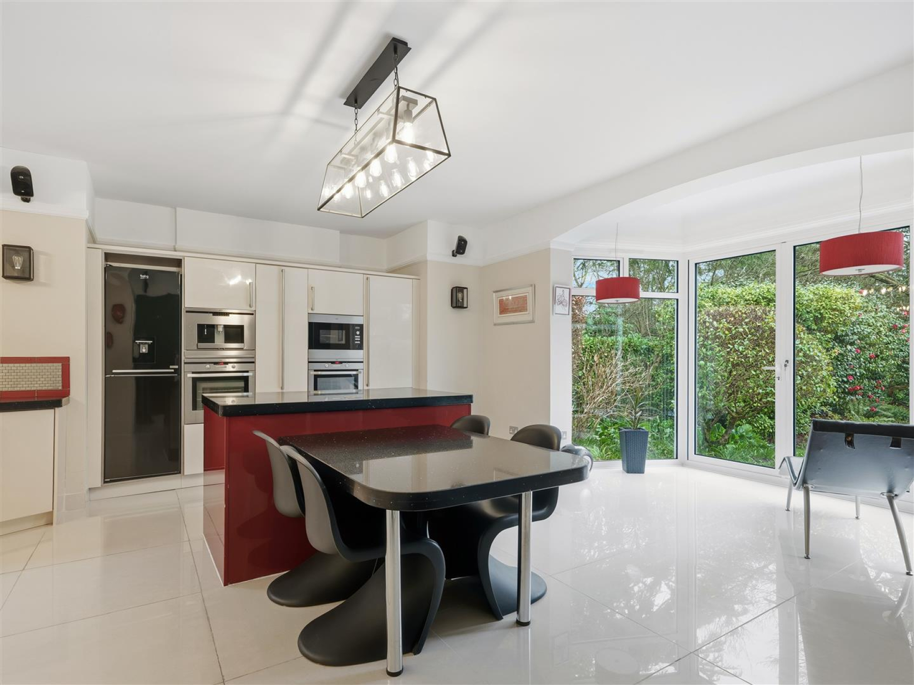 The ground floor offers highly flexible accommodation, arranged as five double bedrooms with four reception rooms or alternatively six double bedrooms with three reception rooms. The principal living room features a fireplace, bay window and French doors opening to the gardens. The kitchen family room is a standout space with extensive fitted units, stone worktops and integrated appliances, also benefitting from a bay window with French doors.