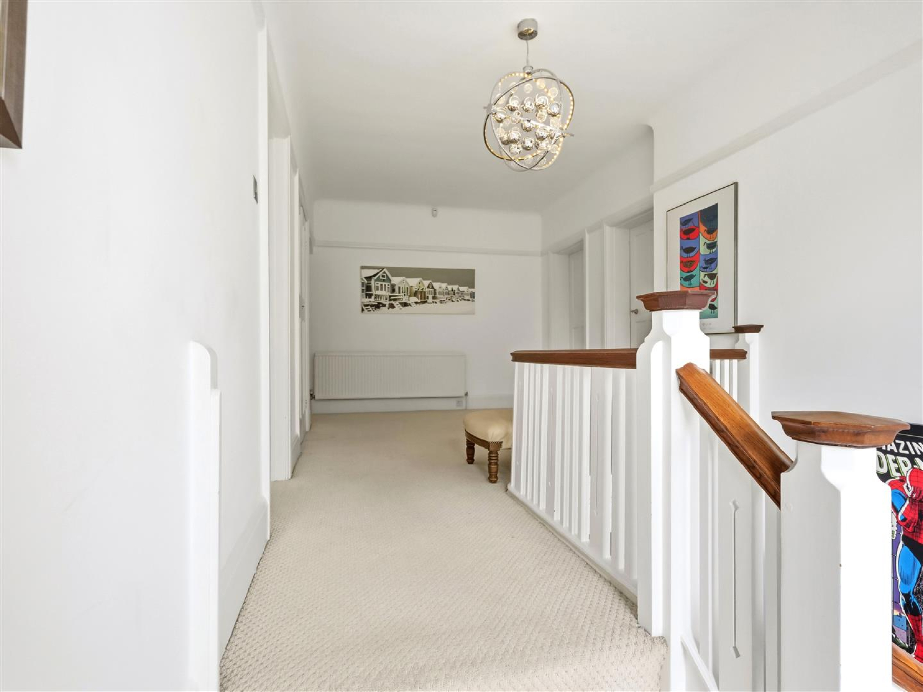 Upstairs, the bright landing leads to five generous double bedrooms. The principal suite enjoys extensive fitted furniture and a luxurious en-suite, while the remaining bedrooms are served by a stylish family bathroom and separate WC.