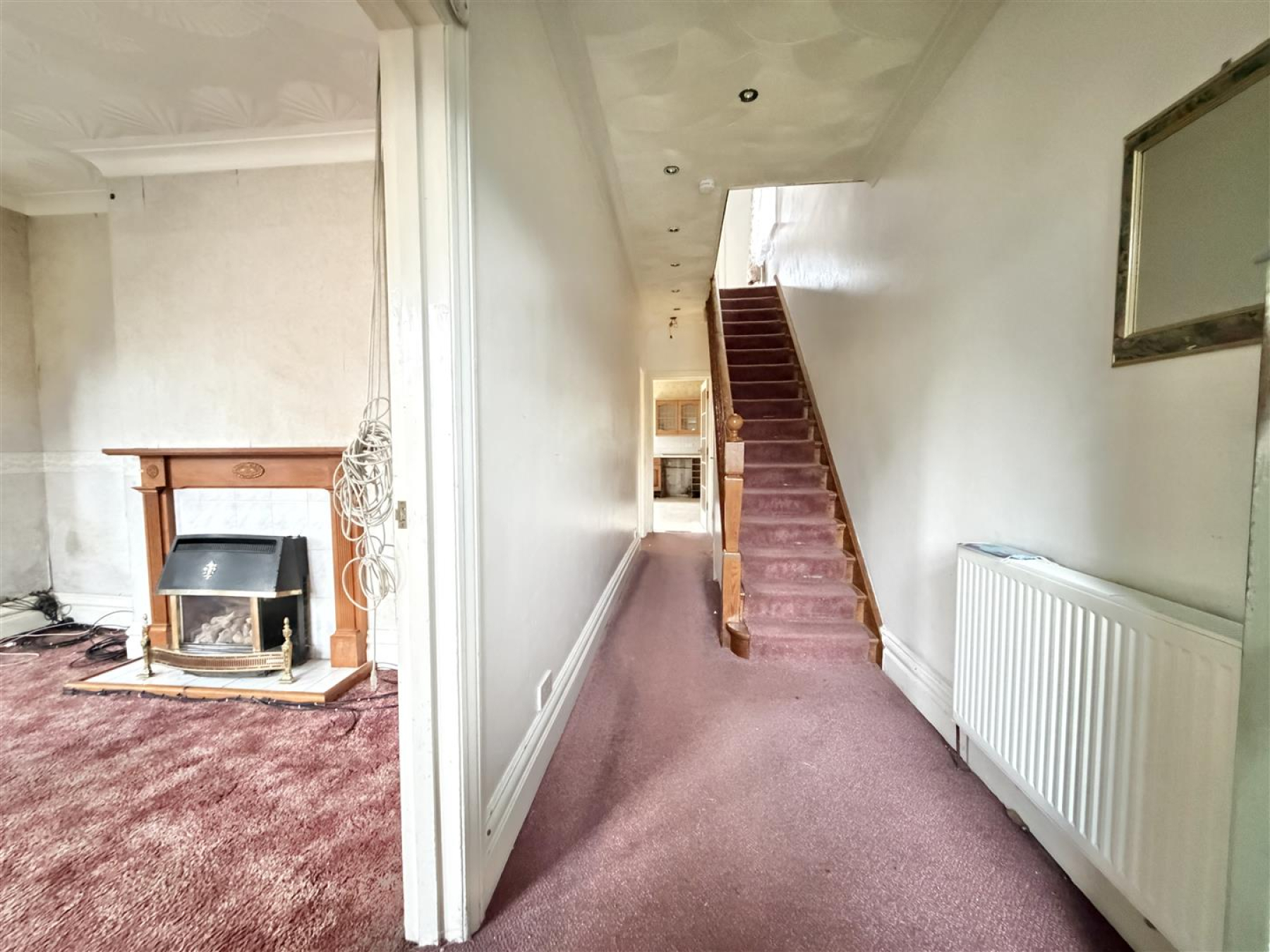 The house now presents purchasers with a genuine blank canvas and the opportunity to create a bespoke home tailored to modern living requirements. The existing accommodation comprises a spacious reception hall, two reception rooms, a kitchen, and an understairs WC to the ground floor. Upstairs are three well proportioned bedrooms and a family bathroom.