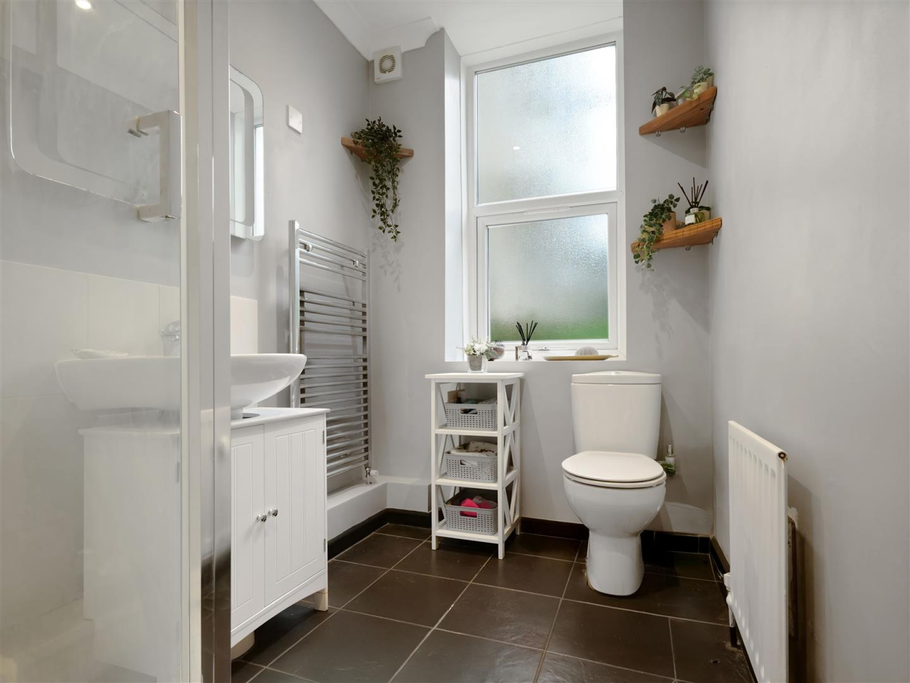 There are two well-proportioned double bedrooms. Bedroom one measures 15'11" x 10'8" (4.85m x 3.26m) and bedroom two measures 12'9" x 12'7" (3.87m x 3.83m). The accommodation is served by a shower room with WC, together with an additional separate WC.