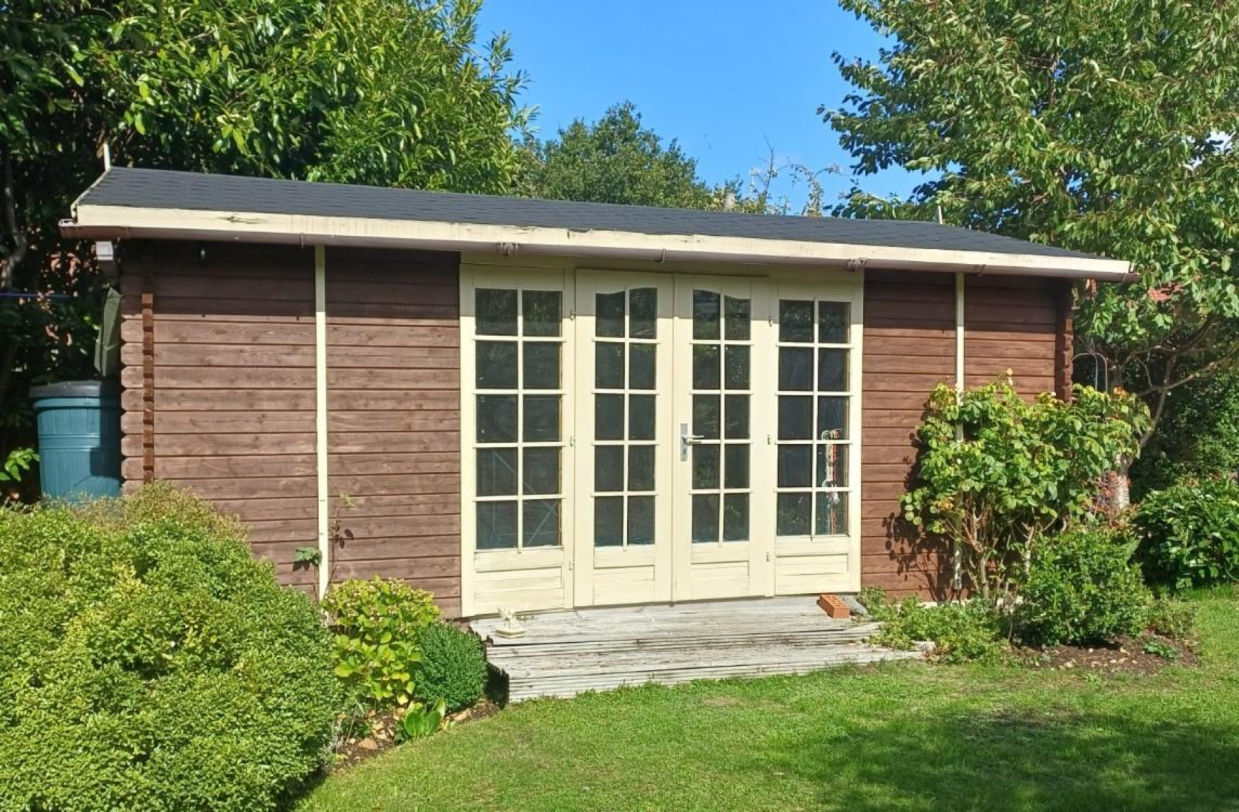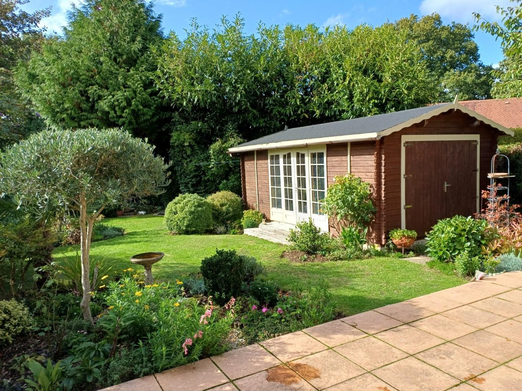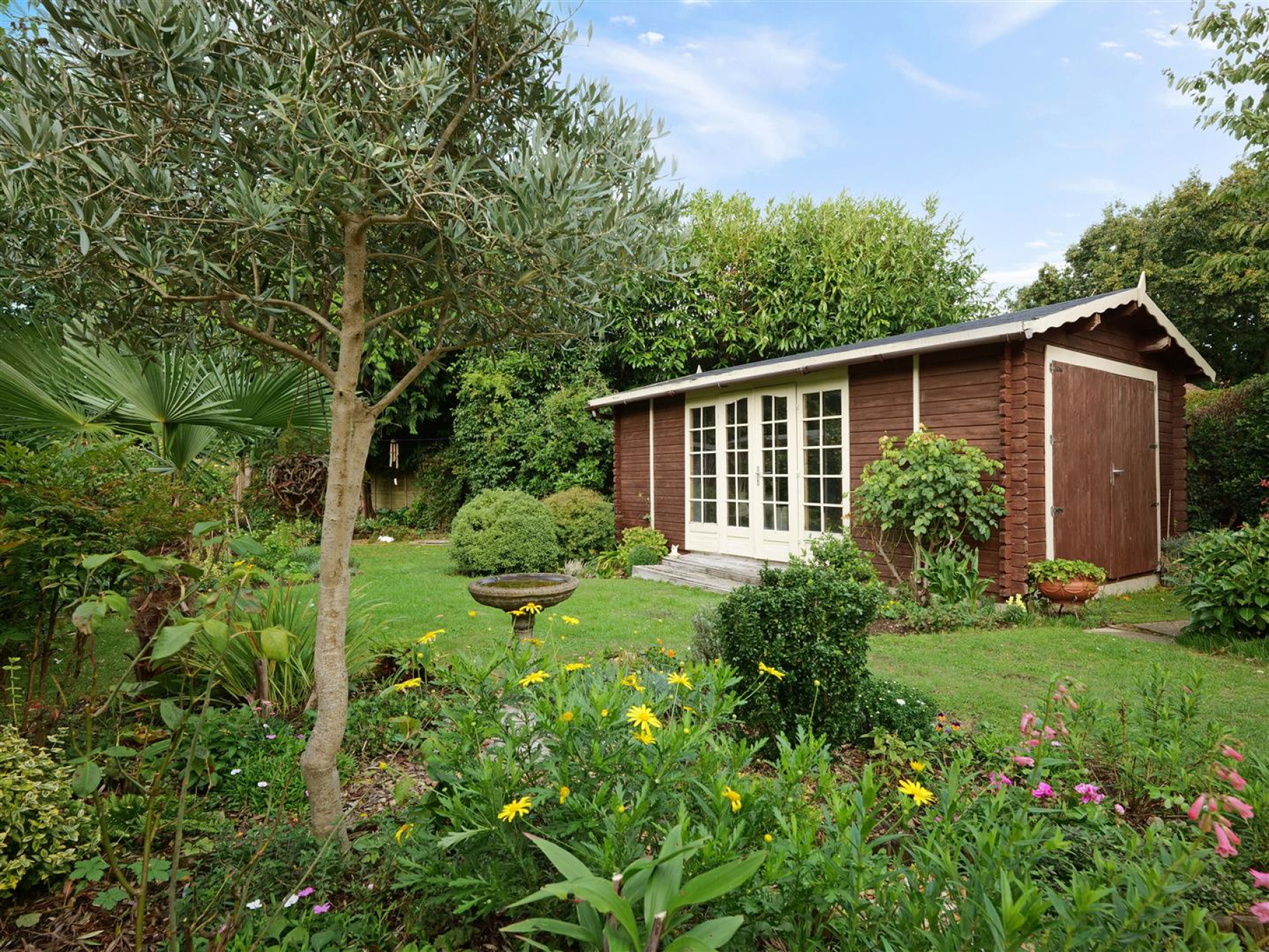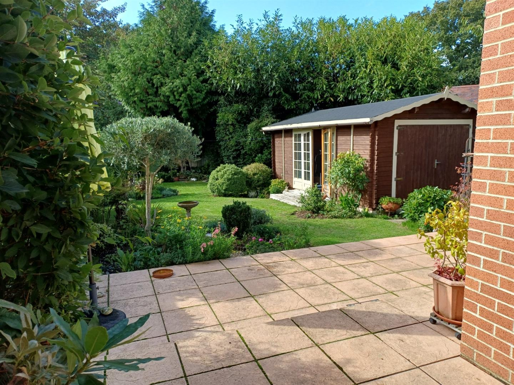 The rear garden is a standout feature, backing onto a nature reserve and offering exceptional privacy. A paved patio adjoins the back of the property, providing the perfect spot for outdoor dining and entertaining. The garden itself is mainly laid to lawn with established borders and includes a 5.4m x 3.5m log cabin with power and light, ideal as a home office, hobby room or garden retreat. A good-sized shed provides further storage.