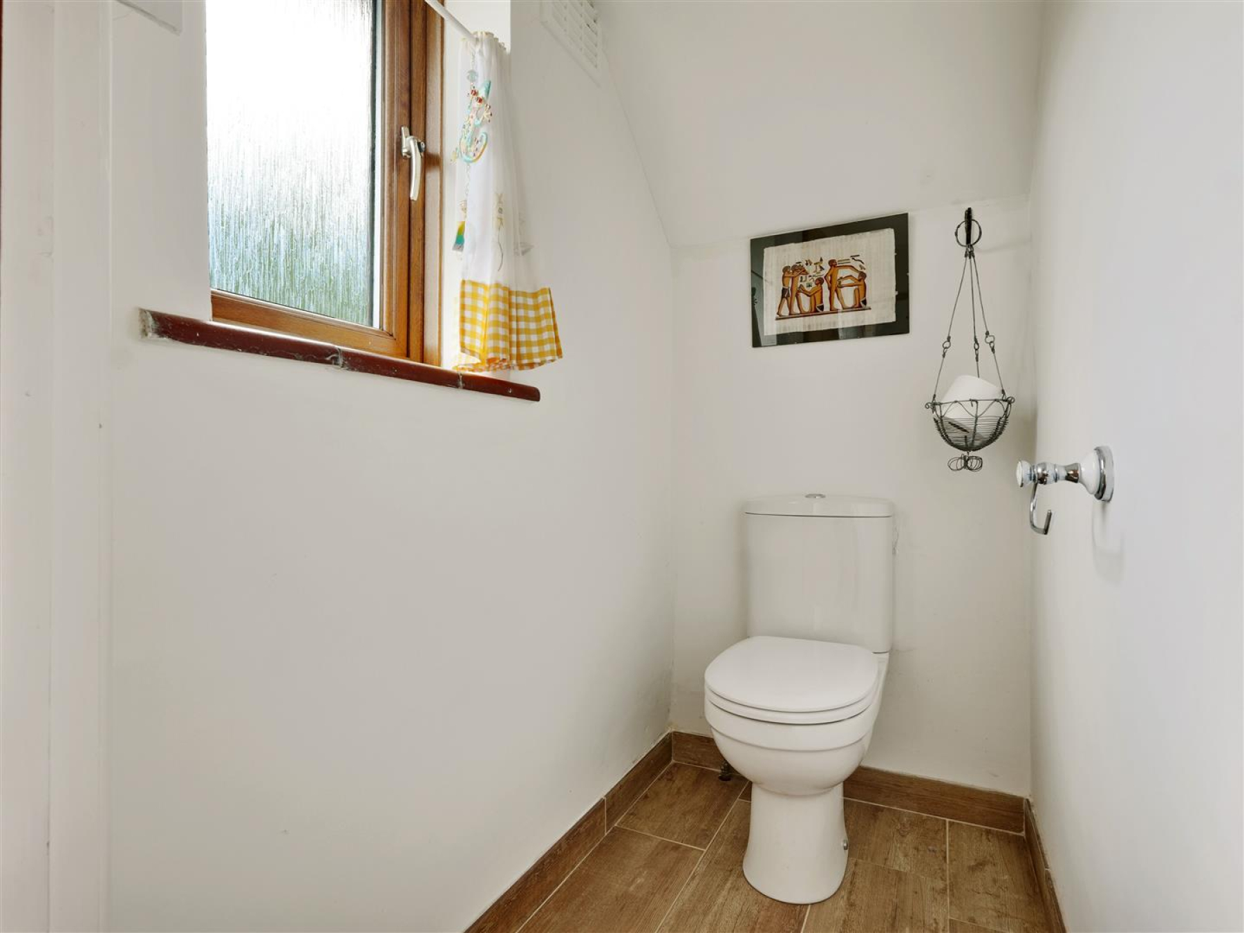 The first floor offers two well-proportioned double bedrooms, both with fitted wardrobes. They are served by a family bathroom and a separate WC, with the landing including a useful built-in storage cupboard.