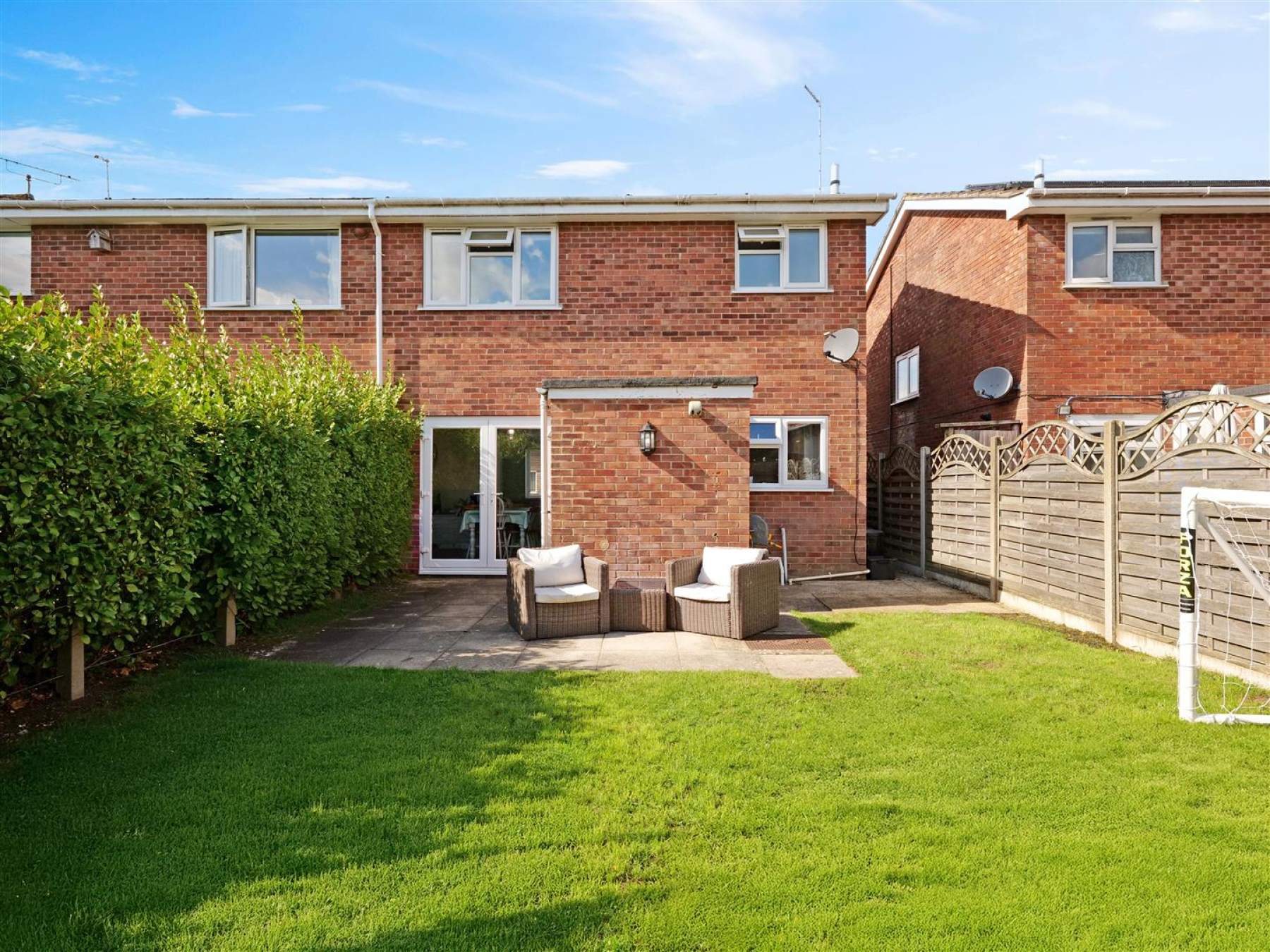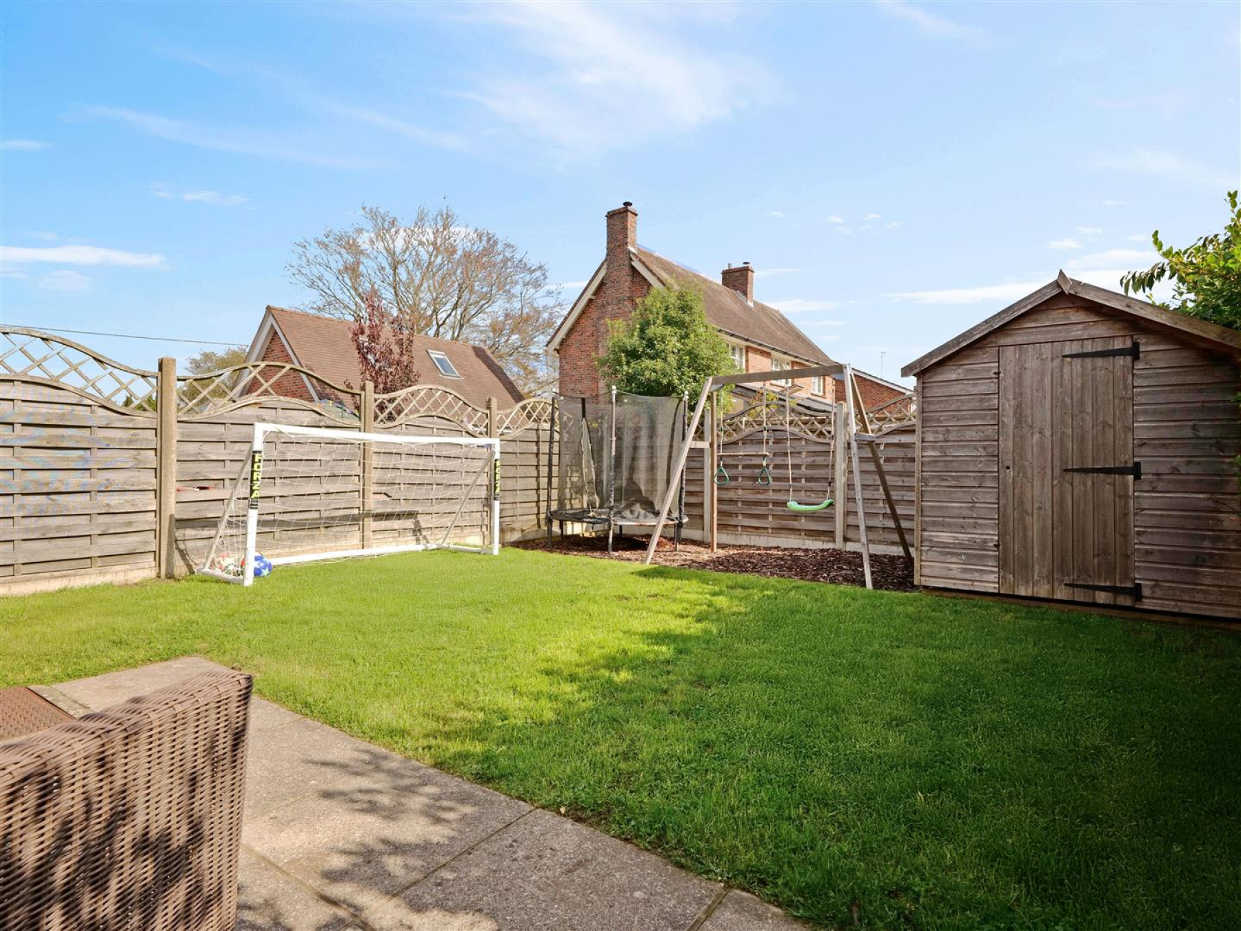 Outside, the rear garden is mainly laid to lawn with a patio area, timber shed and side gate access.