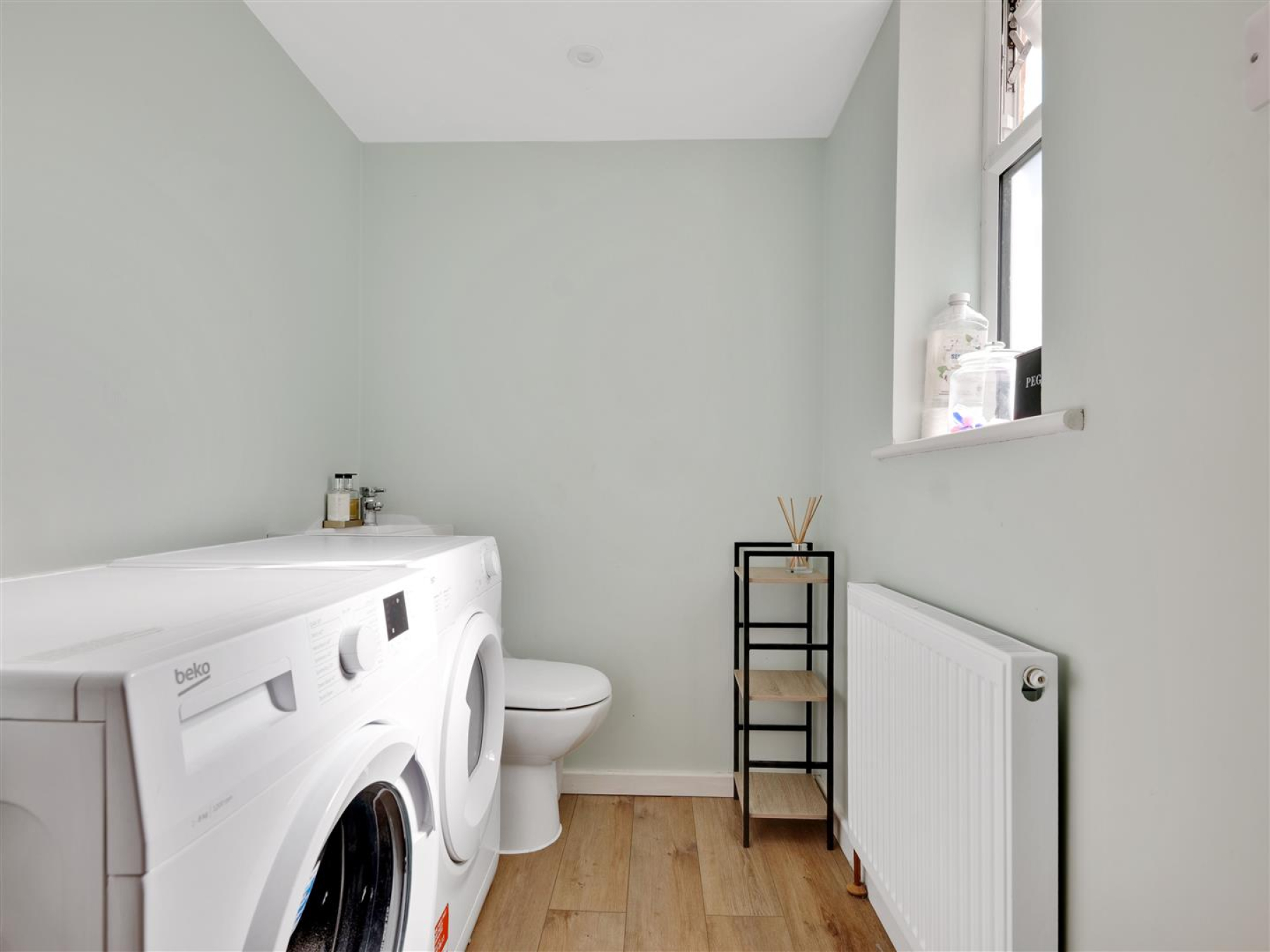 The property has been updated by the current owners to create a practical and versatile layout. Within the entrance hall there is a ground floor office and stairs to the first floor. From the hall, a door opens into a generous open plan L-shaped kitchen, dining and living area, with direct access to the rear garden. A separate utility and cloakroom complete the ground floor accommodation.