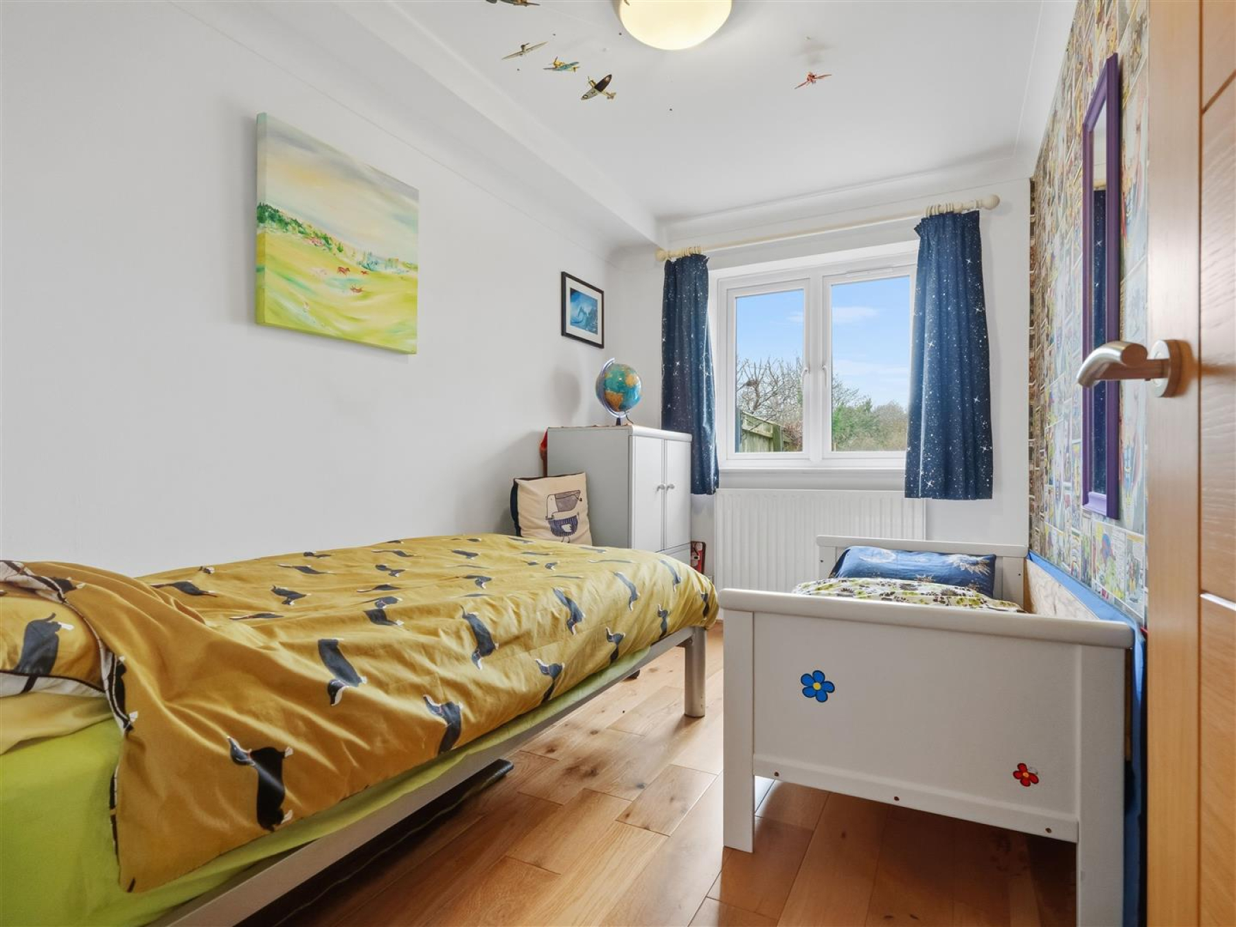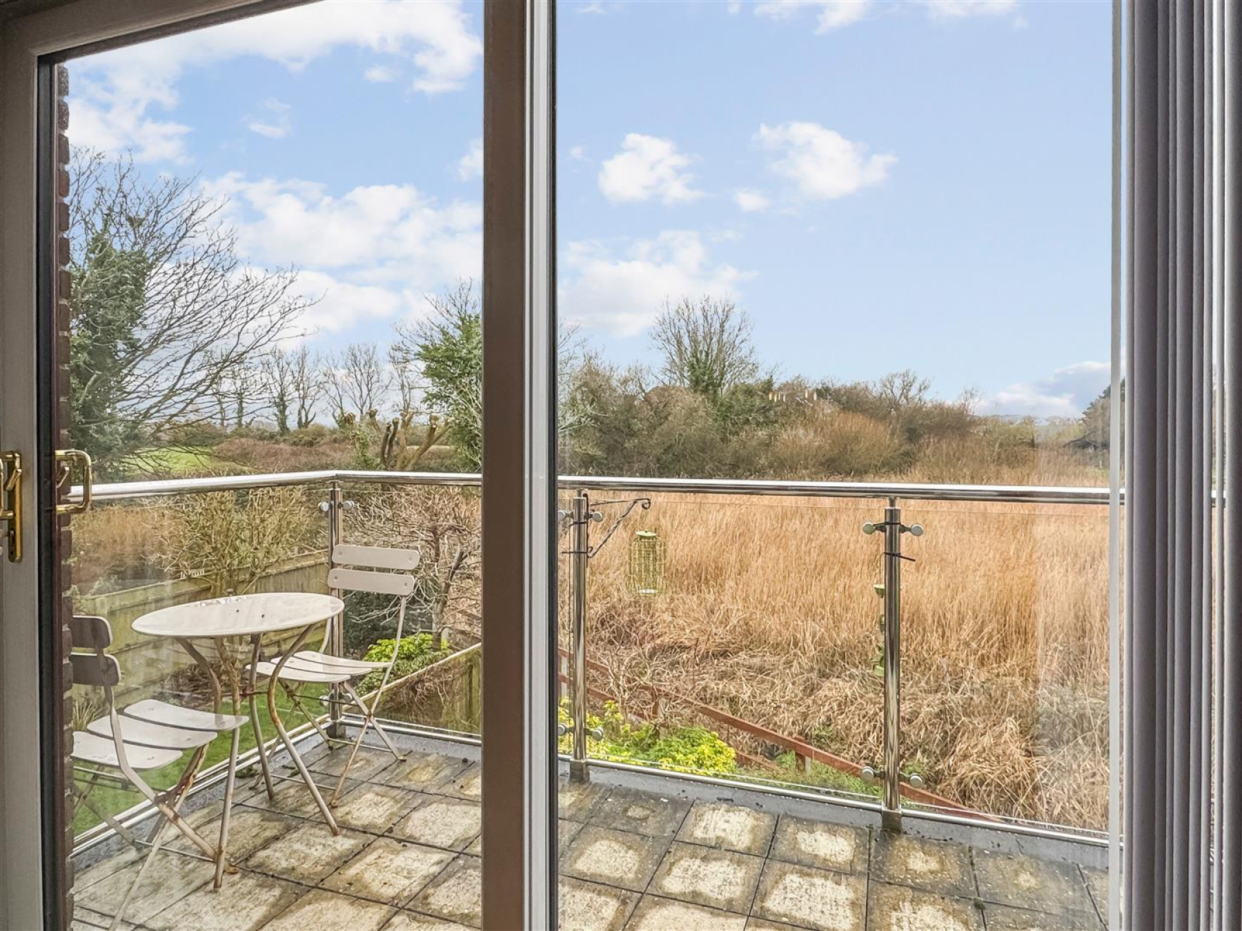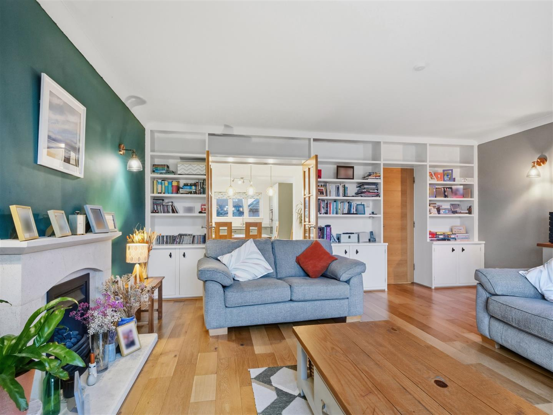 The first floor forms the main living space, designed to take advantage of the elevated position. The sitting room is light and spacious with sliding doors opening onto a private balcony, allowing the outlook across the nature reserve to be enjoyed from both inside and out. Double doors lead through to the kitchen diner, creating a natural flow through the living space.