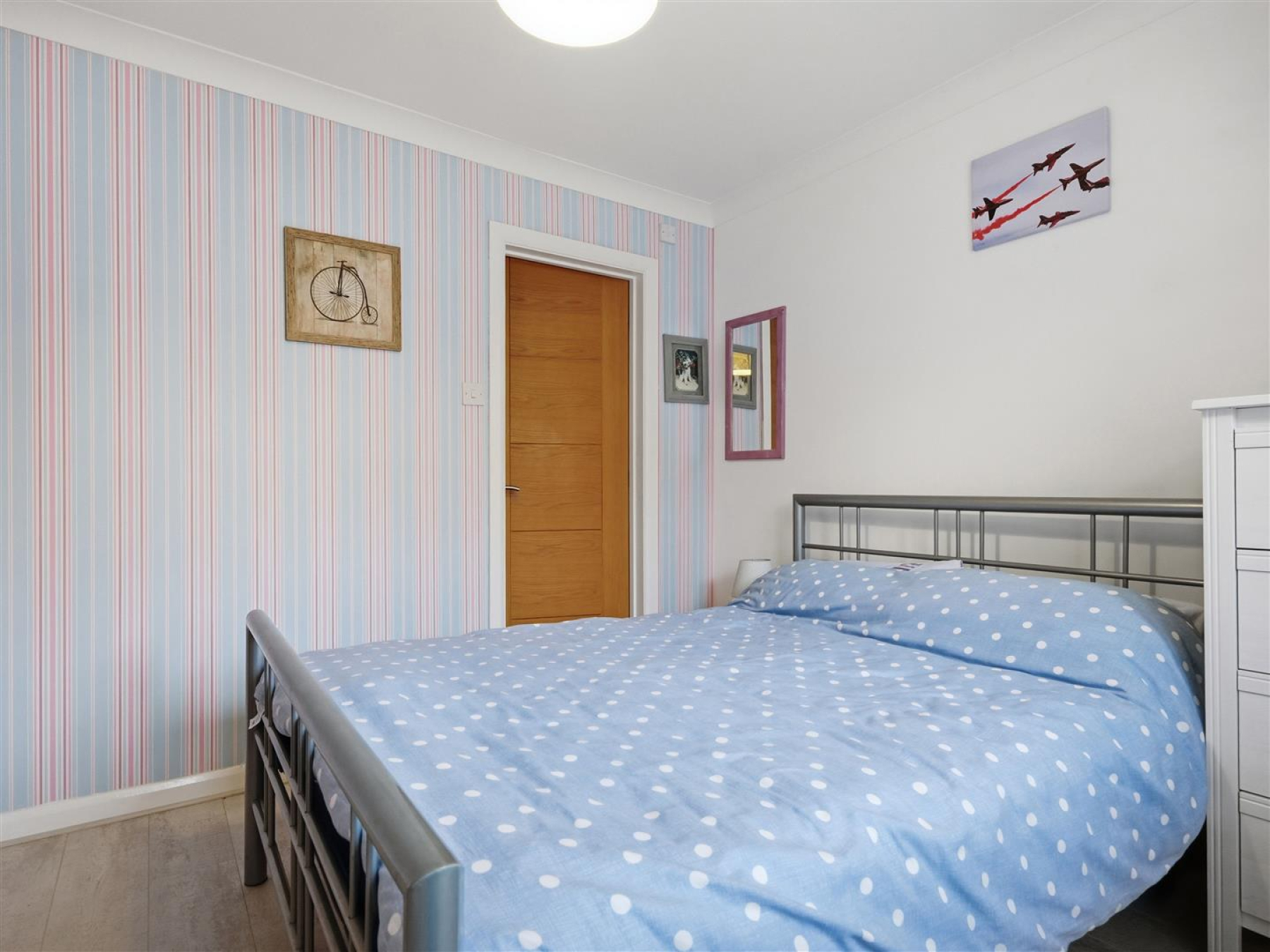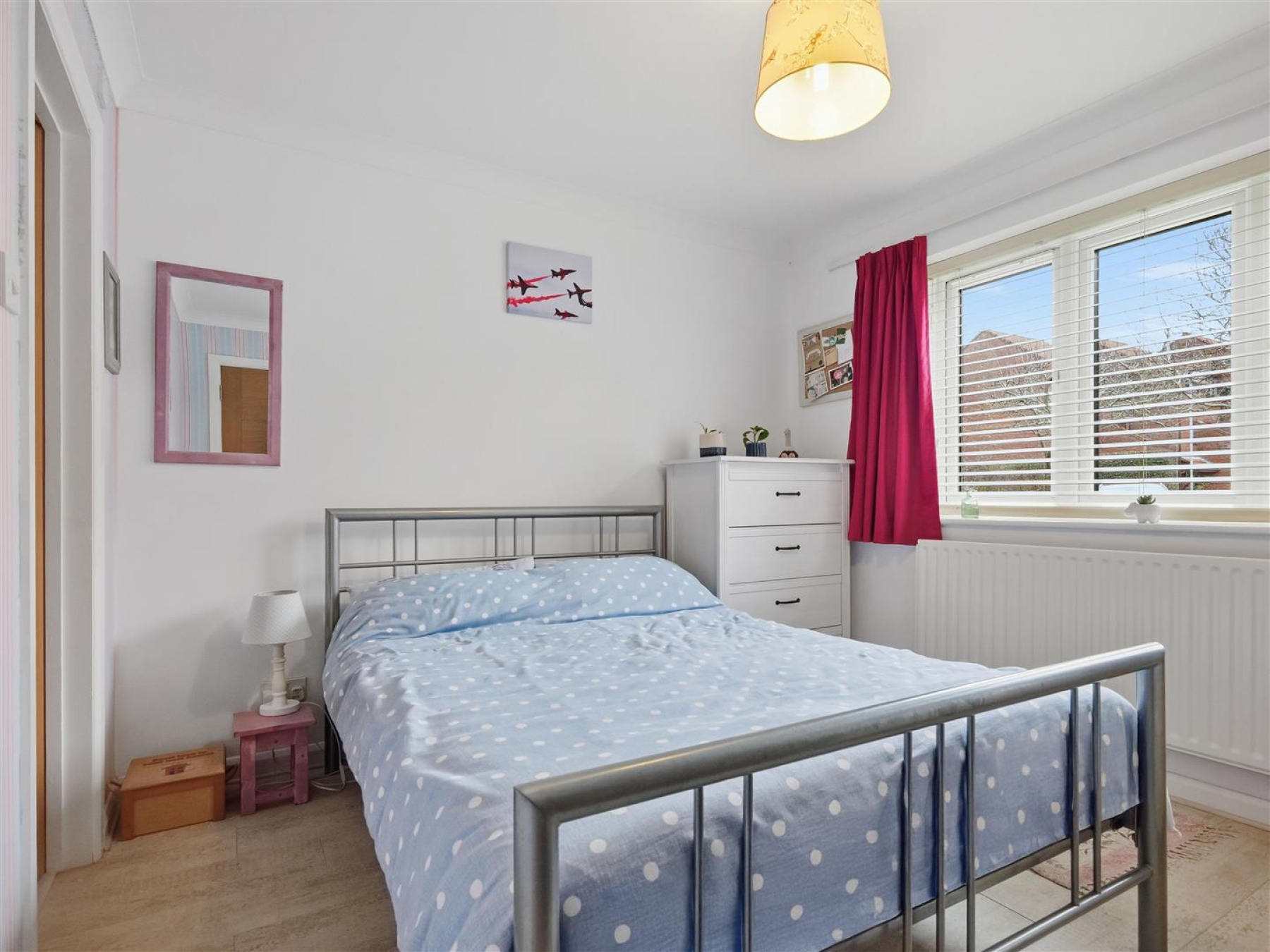 Outside, the rear garden is low maintenance with side access, while to the front there is a lawned garden, casual parking and a single garage in a nearby block.